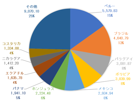中南米における我が国ODAの被供与国(2023年までの累計:億円)