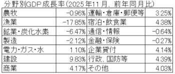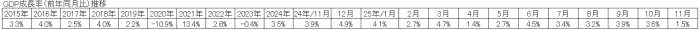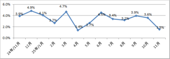11月の経済成長率(GDP成長率)について、主に建設、行政、国防等の成長率の伸びが見られた一方、漁業、鉱業・炭化水素等の成長率がマイナスとなり、全体としてGDP成長率は1.53%(前年同月比)となった。