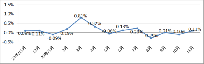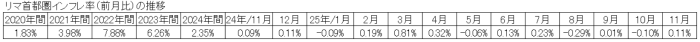 11月のリマ首都圏のインフレ率(消費者物価指数(前月比))は、0.11%となり、最近12か月(2024年12月~2025年11月)の上昇率は、1.37%となった。
