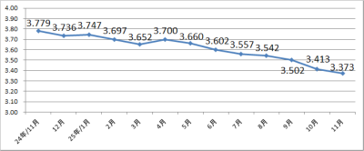 11月の対米ドル為替相場の平均は3.373ソルであった。