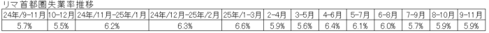2025年9月~11月のリマ首都圏の完全失業率は5.9%であった。