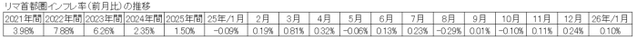 1月のリマ首都圏のインフレ率(消費者物価指数(前月比))は、0.1%となり、最近12か月(2025年2月~2026年1月)の上昇率は、1.70%となった。