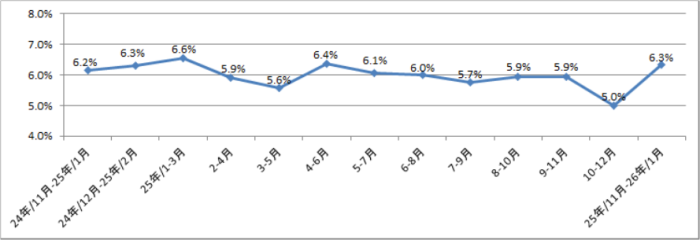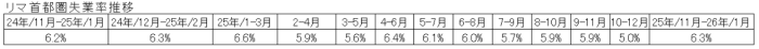 2025年11月~2026年1月のリマ首都圏の完全失業率は6.3%であった。