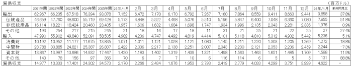 カ 貿易収支