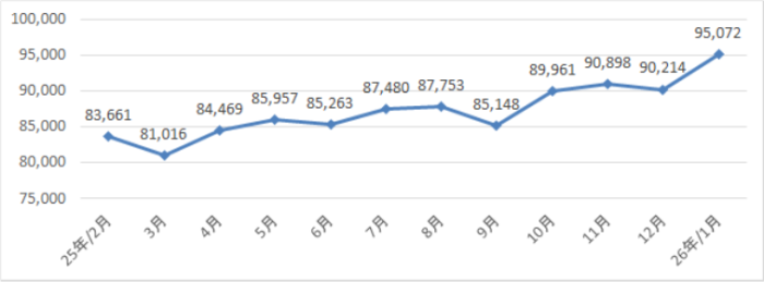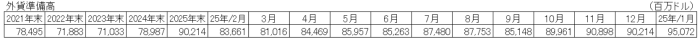 1月末の外貨準備高は約951億米ドルとなった。