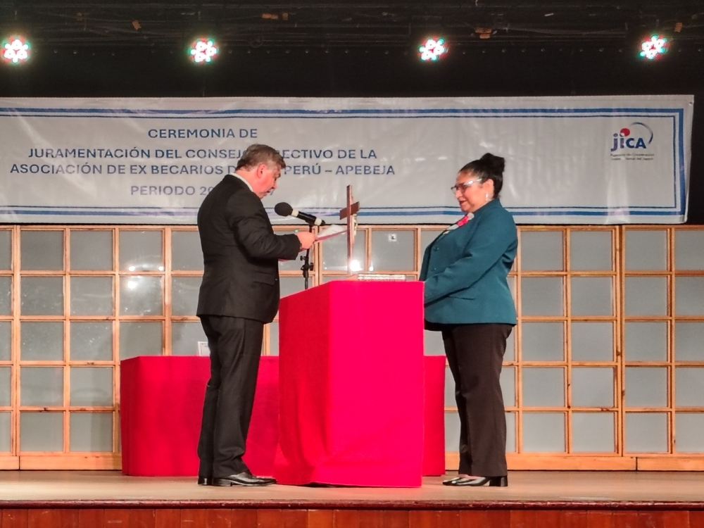 La referida asociación está conformada por profesionales y técnicos que fueron capacitados en el Japón o en terceros países a través de la Agencia de Cooperación Internacional del Japón. En su discurso, la encargada de negocios a.i. FURUKAWA expresó su deseo de que la APEBEJA siga cumpliendo un papel fundamental en fortalecer los lazos de amistad entre el Japón y el Perú, y en promover vínculos de cooperación en diversos campos, aprovechando los conocimientos adquiridos en el Japón.